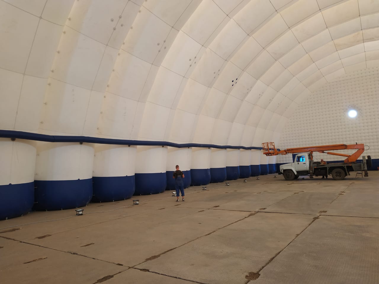 Za uspešnu izgradnju pneumatskog hangara pružili smo usluge utiskivanja. Naš inženjer, koji poznaje lokalni jezik, bio je angažovan na koordinaciji i kontroli svih faza izgradnje. To je omogućilo da se obezbedi visok kvalitet i usklađenost svih radova sa međunarodnim standardima.