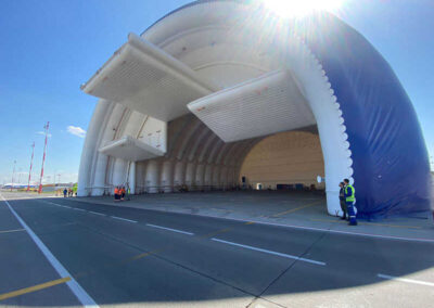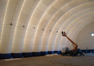 Za uspešnu izgradnju pneumatskog hangara pružili smo usluge utiskivanja. Naš inženjer, koji poznaje lokalni jezik, bio je angažovan na koordinaciji i kontroli svih faza izgradnje. To je omogućilo da se obezbedi visok kvalitet i usklađenost svih radova sa međunarodnim standardima.